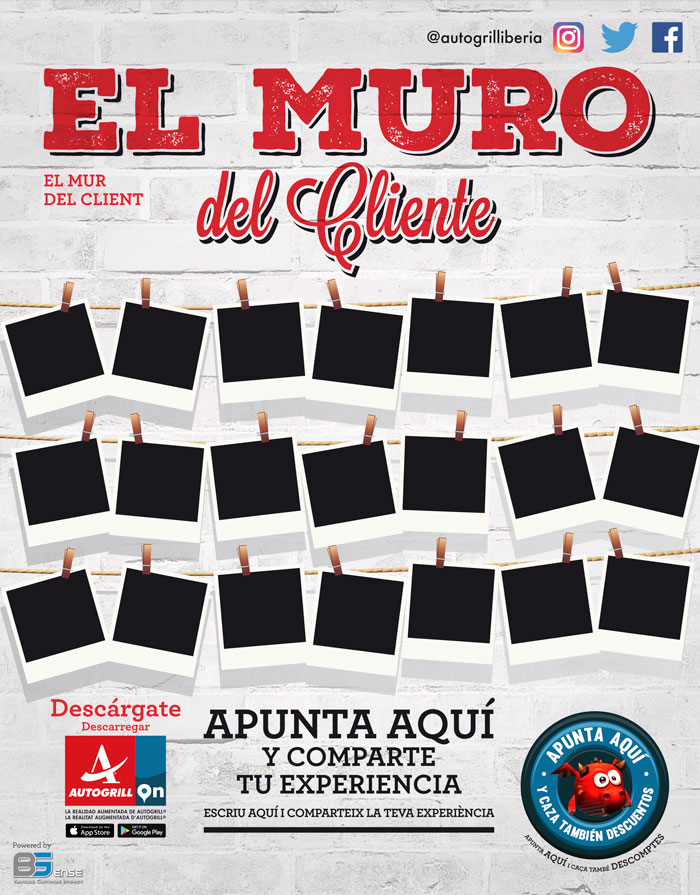 “El cliente se encontrará con un muro lleno de polaroids en negro, que cuando apuntas con el móvil, muestran su contenido. Es dinámico, se va desplazando conforme hay más fotos. Además te permite valorar la experiencia en Autogrill, para tener un feedback. También usaremos el muro para hacer concursos y sorteos. En agosto por ejemplo, hay que hacerse una foto con un bocadillo para entrar en el sorteo de regalos.” Nos comenta Daniel Rodríguez, Director de Marketing de Autogrill.