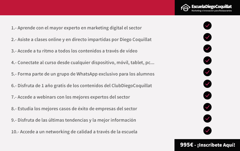 Access the only specialized course in digital marketing for restaurants and hospitality and gastronomy businesses for € 995