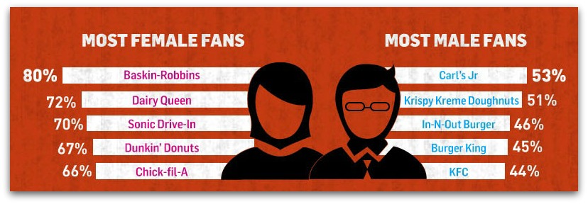 No es casual que la cadena de helados y pasteles Baskin-Robbins tenga una mayoría de publico femenino en Facebook, ya que su imagen y su producto está muy enfocado a este perfil de consumidor, un ejemplo de ello se puede ver en su página web.