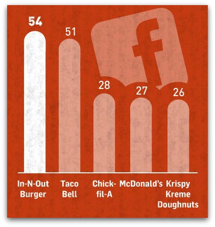En base a la combinación de variables como «me gusta», comentarios, compartir e impresiones, la cadena de restaurantes que más engancha a sus fans en Facebook es In-N-Out Burger