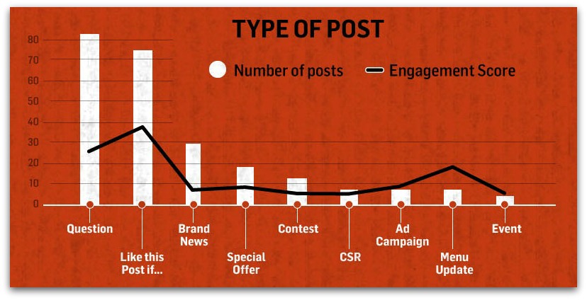 • Los contenidos que más se publican en las redes sociales por parte de las cadenas de restaurantes americanas son preguntas  y aquellos que intentan interactuar a través del contenido «si te gusta este post…», siendo estos últimos los que más enganche tienen para los usuarios