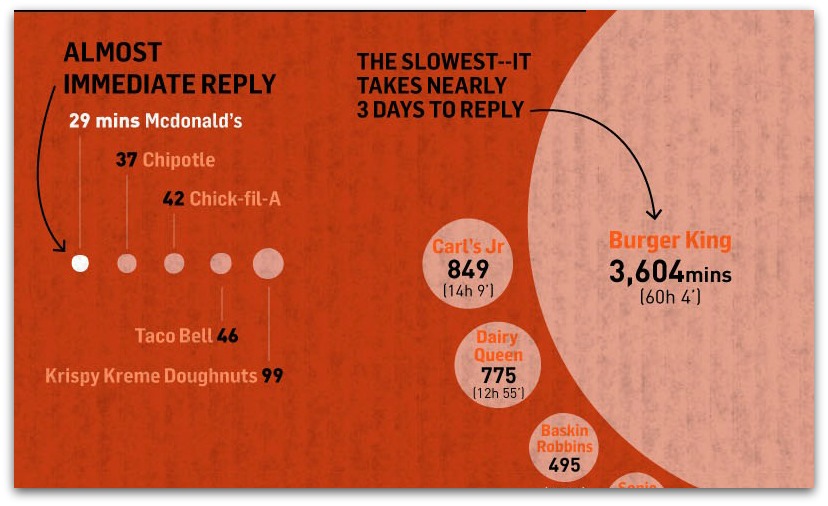• La cadena de restaurantes que más tarda en contestar a sus seguidores en twitter es Burger King que lo hace casi en 3 días.