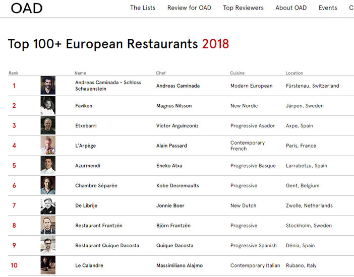 Lista completa: OAD Top 100+ European Restaurants 2018