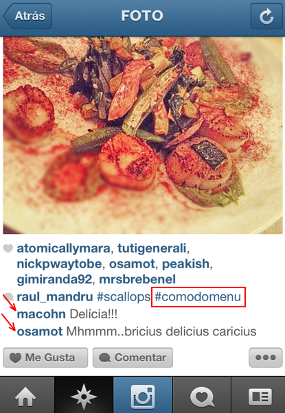 El restaurante tiene que crear o inventar el nombre del hashtag donde se van a ir agrupando, a modo de álbum, todas las fotografías que el propio restaurante y los clientes van a compartir en Instagram. En nuestro ejemplo el nombre del hashtag elegido es #ComodoMenu.