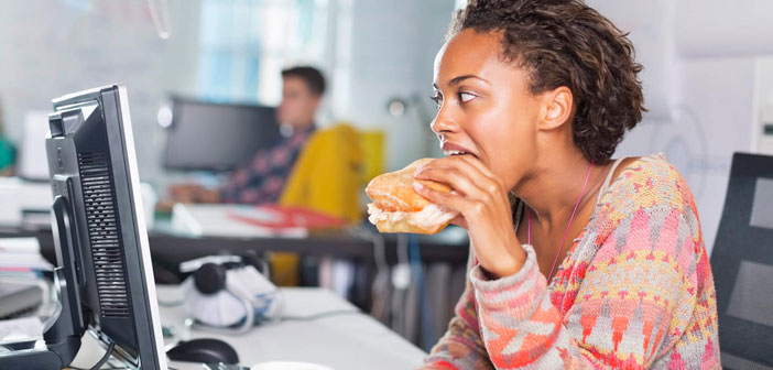 El estrés o las prisas pueden hacernos caer en el menú del día, en la intención de llenarnos la barriga como una forma de reducir la presión de nuestra cabeza, algo totalmente inútil, ya que se trata como hemos dicho, de alivios momentáneos que no nos ayudan. Concentrarnos entonces en ser más conscientes de nuestras emociones y comprender cómo influyen en nuestro pensamiento y comportamiento nos ayudará a controlar nuestras conductas a la hora de alimentarnos, aunque sea en un ambiente de trabajo y presión como la oficina.