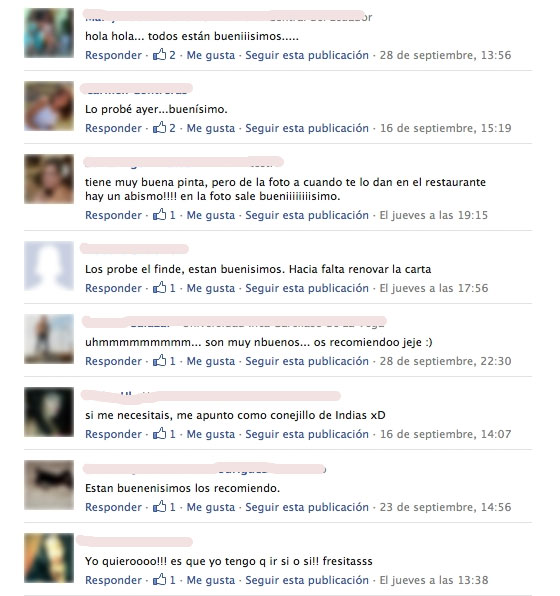4.- Genera un importante feedback, ya que muchos de los clientes que han probado sus platos van a volver a las redes sociales para compartir su experiencia con su grupo de amigos o seguidores, consiguiendo que el propio cliente se convierta en el transmisor del mensaje y dotándolo de una mayor credibilidad. Aquí podemos ver algunos ejemplo :