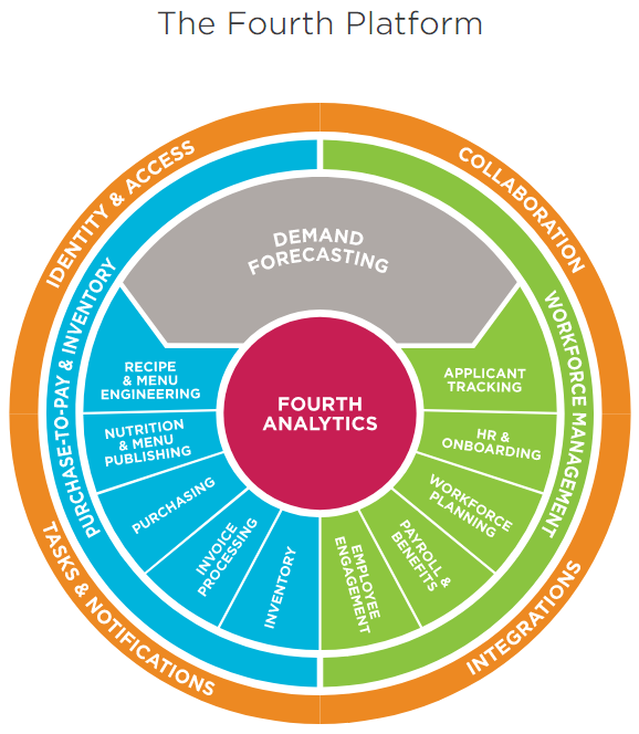 - Una plataforma de operaciones para el sector restauración holística que incluye integración con cualquier terminal punto de venta, plataforma financiera y aplicaciones industriales, así como capacidad para emitir informes y realizar presentaciones.