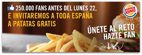 Se trataba de superar en muy pocos días la cifra de 250.000 fans, con el compromiso por parte de la empresa de invitar a sus clientes a patatas fritas en sus restaurantes de España.
