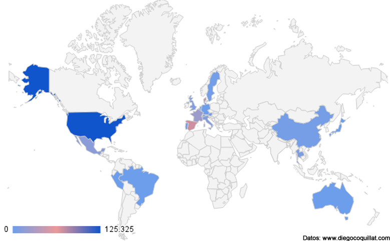 España tiene un puesto muy destacado, siendo el segundo con mayor número de seguidores.
