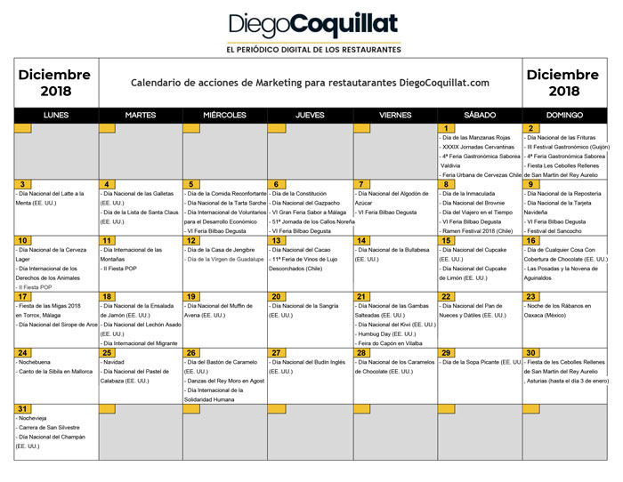 Y es que a veces es necesario aprovechar oportunidades de negocio alternativas, a menudo ocultas y poco exploradas por la competencia, para hacerse con un hueco en un mercado tan competitivo. Por esta razón, además de estas tres opciones tratadas en detalle, os instamos a revisar las diversas promociones en restaurantes que se pueden acometer este mes de diciembre.