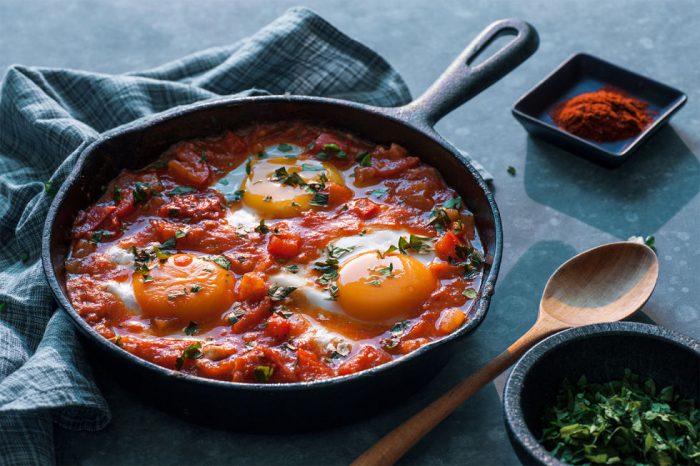 5. Desayuno israelí con huevos y tomate. El shakshukaes uno de los desayunos típicos de Israel que le gustaría probar a algunos de los encuestados.  Se trata de unos huevos escalfados con salsa de tomate, cebolla, guindilla y comino.