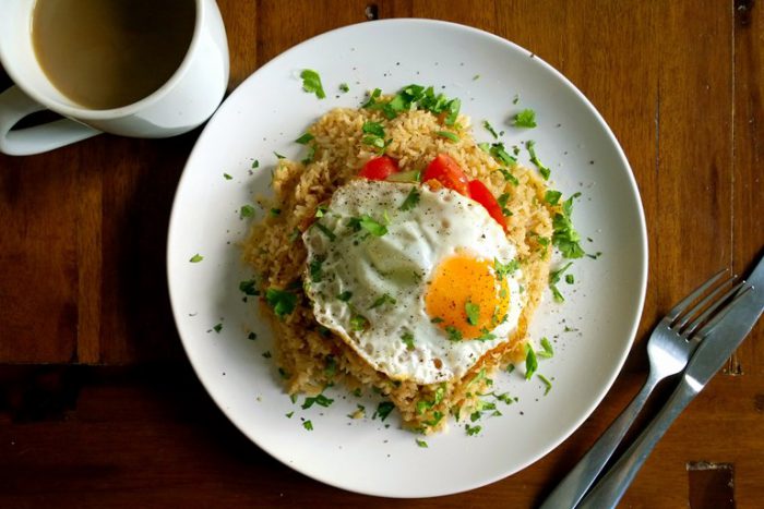 3. Nasi goreng indonesio. El desayuno típico de Indonesia, que se compone de arroz frito y huevo, resulta muy apetecible para los españoles. Este plato tiene multitud de variantes pero el arroz y el huevo son dos de los básicos que suelen prevalecer en un buen nasi goreng.