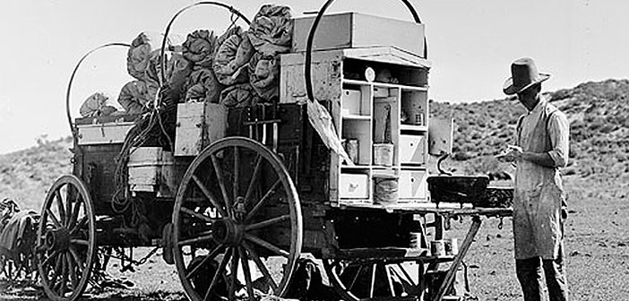 En el siglo XIX, los carros de comida tuvieron dos evoluciones importantes. La primera es que se volvieron esenciales para los vaqueros con los ‘Chuck wagon’. Un ranchero en 1866 se preparaba para mover una gran cantidad de ganado a través del desierto, por lo que no habría forma de conseguir comida. Así que Chuck, así se conocía al granjero, montó una caja para guardar utensilios y también condimentos. Las comidas eran sencillas pero reconfortantes.