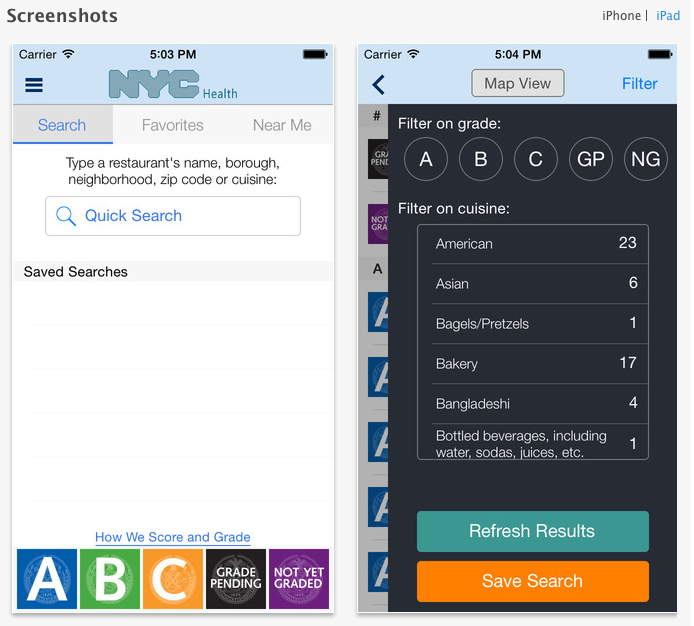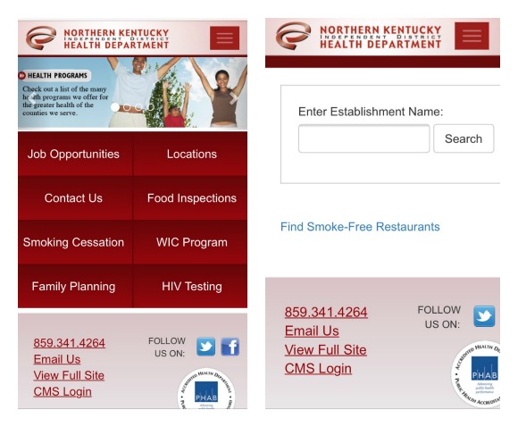 El primer caso es en el Norte de Kentucky donde los usuarios de smartphone pueden acceder a la información sobre las inspecciones de alimentos que se han realizado en los restaurantes a través de su dispositivo móvil.