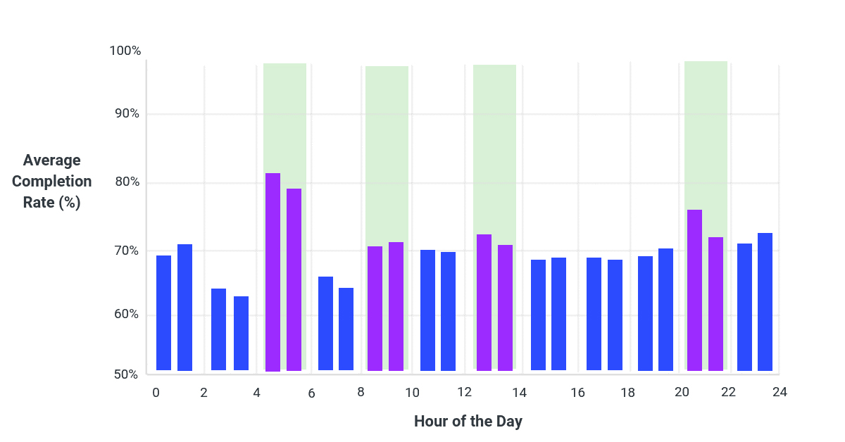 El pico de tráfico en Instagram coincide con el mejor momento para sacar el máximo provecho a nuestra campaña de publicidad online. Nada nuevo en el horizonte. Dado el segmento demográfico que frecuenta esta red social, la llegada a casa tras salir del trabajo por la noche marca el instante adecuado para que las compañías lleguen al mayor número de gente. También las horas de la comida.