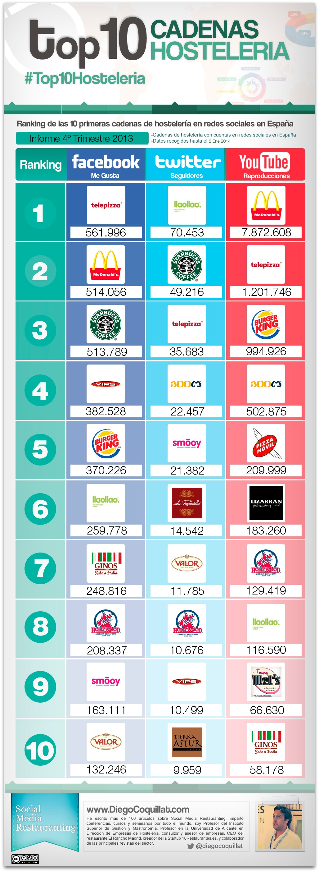 Ha terminado el año 2013 y con ello os presento otra serie más de infografías con las cadenas de restaurantes, cocineros y restaurantes independientes que mejor lo han hecho este último año en las redes sociales.