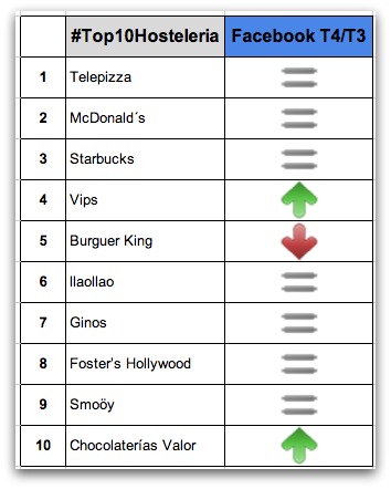 Facebook : Evolución en el #Top10Hosteleria [Comparativa del 4º trimestre respecto al 3º en 2013]