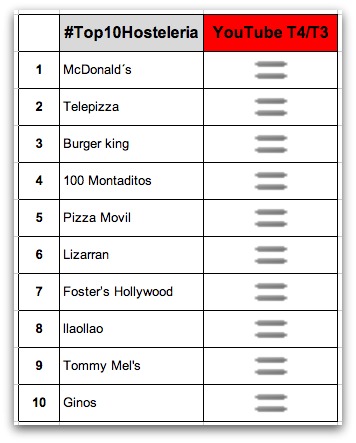 Youtube : Evolución en el #Top10Hosteleria [Comparativa del 4º trimestre respecto al 3º en 2013]