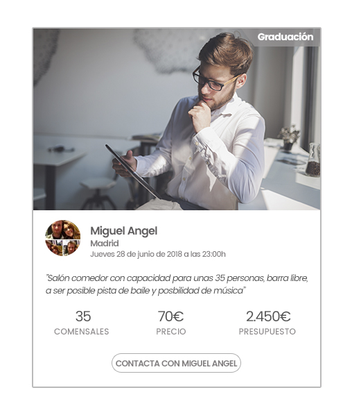 A continuación, te mostramos algunas de las propuestas de eventos más atractivas publicadas en 10Restaurantes durante el último mes. Ponte ya en contacto con los clientes y consigue grupos y eventos para tu restaurante.