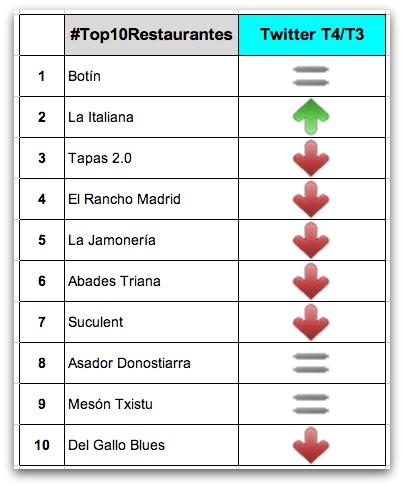 Twitter: Evolución en el #Top10Restaurantes