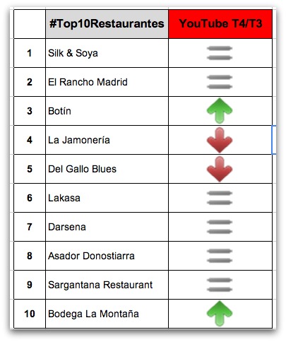 Youtube: Evolución en el #Top10Restaurantes