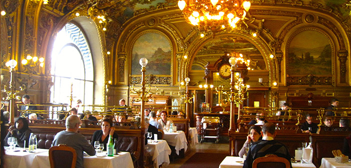 Ubicado en la estación de Lyon, París, es famoso en todo el planeta por llevar más de un siglo abierto. Aunque ha sido reformado recientemente, conserva la esencia que cautivó a Salvador Dalí, Coco Chanel, Colette, Marcel Pagnol, Brigitte Bardot, Jean Gabin y Jean Cocteau. El Tren Azul se caracteriza por un ambiente señorial en el que hasta los pequeños detalles están cuidados. En él se sirven platos típicos de la cocina francesa que oscilan entre los 35 y los 46 euros. El menú completo tiene un precio de 65 euros, mientras que el adaptado para los viajeros se sitúa en 48 euros.
