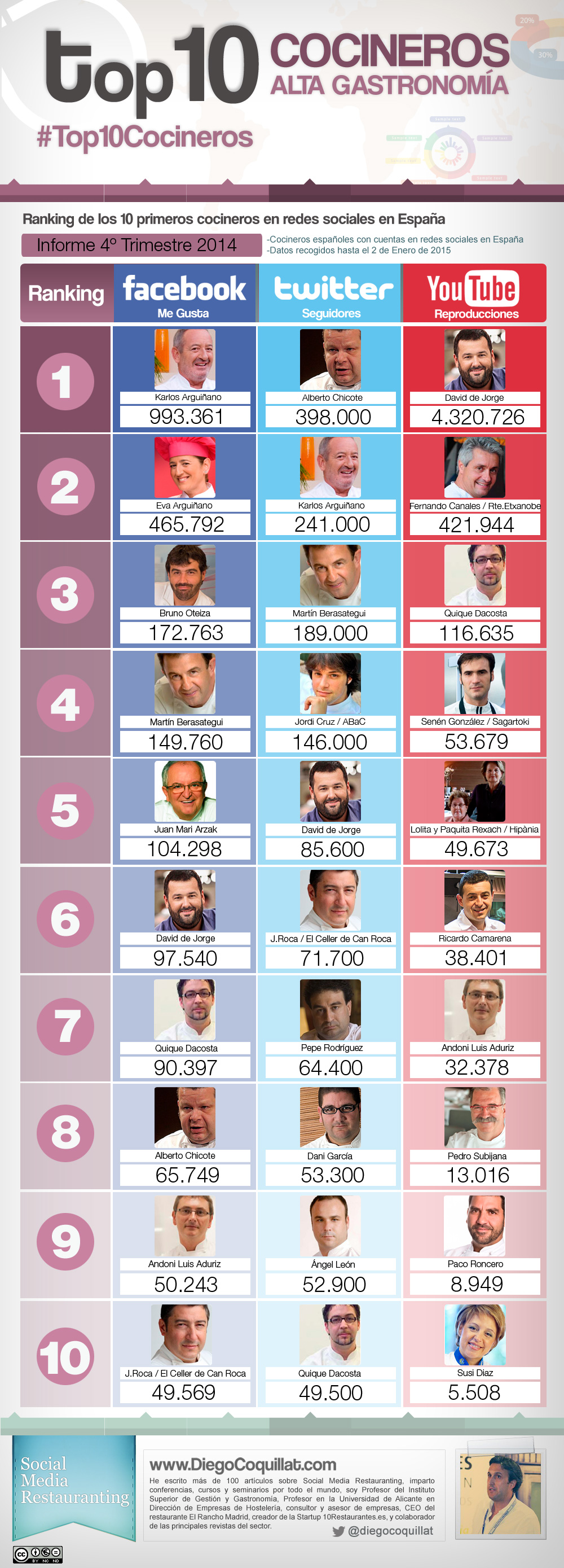 Aquí tienes el #Top10Cocineros4T2014, los 10 mejores cocineros en las principales redes sociales durante el cuarto trimestre del 2014.