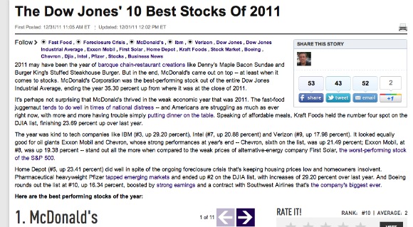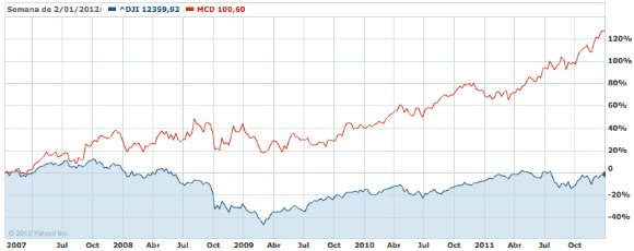 Pero esto no queda aquí, ¿sabéis cual ha sido el valor del índice Dow Jones con mejor rentabilidad en el año 2011? pues sí, ese que estás pensando, McDonald’s, con una rentabilidad superior al 35%.