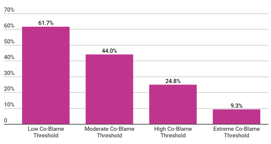 Por supuesto, no todos los participantes ejercen su reparto de responsabilidad de forma idéntica. Un 61.7% de los encuestados que culpan a las diferentes partes implicadas lo hacen de forma muy tímida. Por otro lado solo un 9.3% de los participantes se atreven a afirmar este hecho de forma tajante y categórica.
