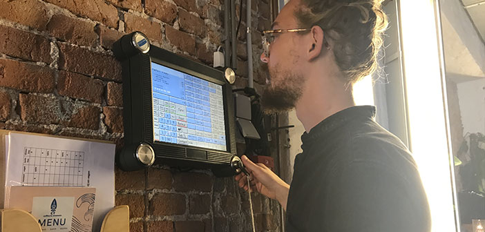 En cuanto a los T.P.V, son simplemente pantallas pegadas a la pared que no quitan nada de espacio y donde todos los camareros tienen que ticar con su huella.