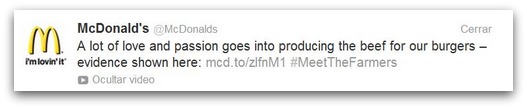 Un par de horas mas tarde, lanzaron otro hashtag #MeetTheFarmers (Conoce a los granjeros), con la misma idea, dar a conocer a uno de sus proveedores más importantes como es el de la carne desde la figura de los granjeros.