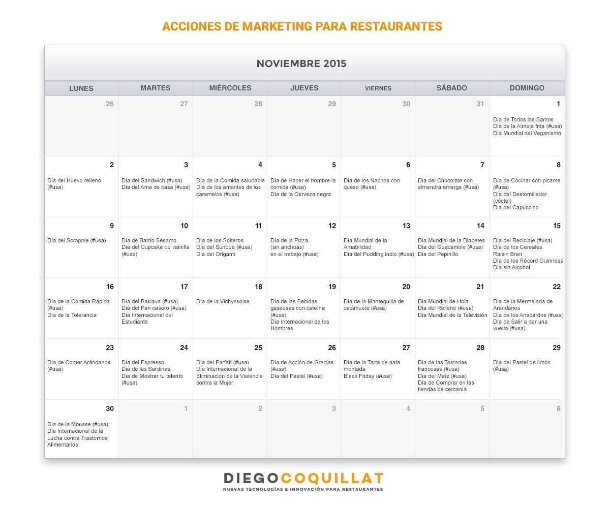 Noviembre 2015-Calendario de acciones de marketing para restaurantes