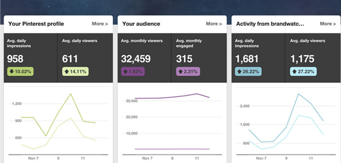 - El primero de ellos analiza tu perfil de Pinterest, ofreciéndote datos para un periodo seleccionado, tales como: