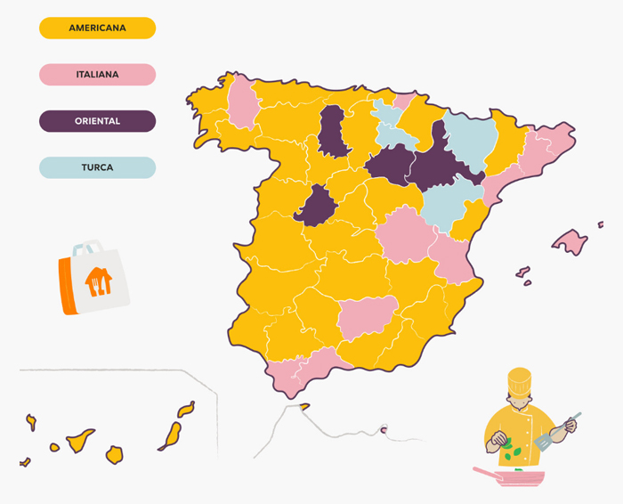 - Cocina americana, italiana, china, japonesa y española son, en este orden, las más demandadas