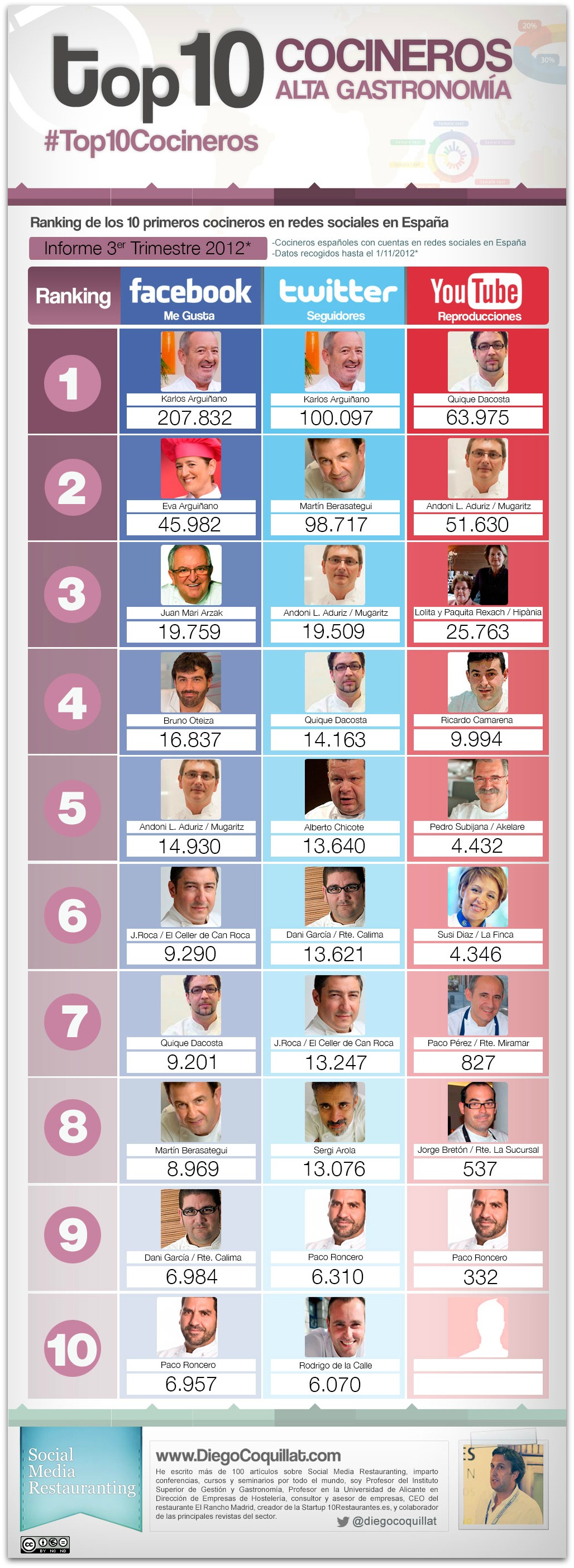 Ranking de los 10 mejores cocineros en las redes sociales en España [3T2012]