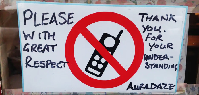 Es el caso del restaurante japonés Auradaze, especializado en delicias niponas y ubicado en Royal Leamington Spa (Reino Unido). Darren Yates es el propietario y jefe de cocina, comentaba para The Independent sus motivos: «La razón detrás de ello [la prohibición] es que las dos horas que dura la comida y mientras se rompe una hogaza de pan, el énfasis debería ponerse en la conversación. La hora de comer es el momento más importante para la familia, para juntarse y hablar de cómo ha ido el día, no para atender el teléfono».