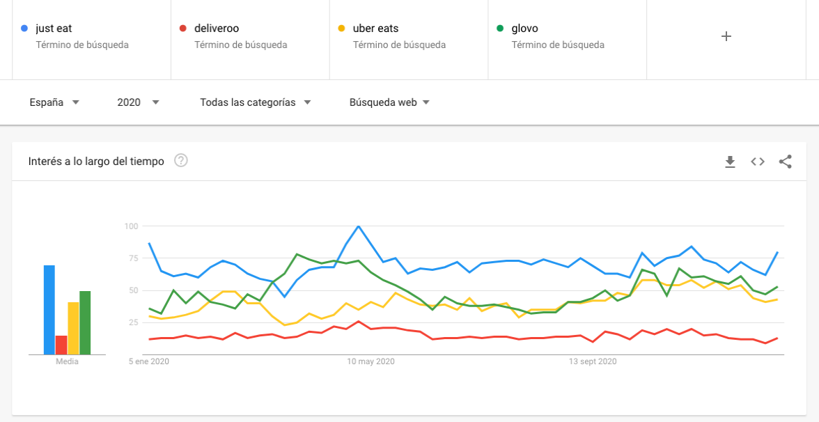 También es importante remarcar las búsquedas de los principales agregadores o intermediarios digitales, que en la mayoría de los casos se han convertido en ese conector tecnológico necesario para que millones de clientes puedan disfrutar en sus casas de sus experiencias gastronómicas, empresas de big data que cada vez ganan más terreno y más relevancia en el mercado nacional.