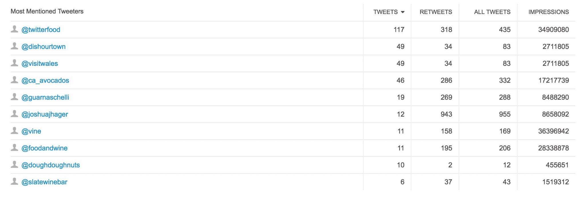 Entre los usuarios que mas están utilizando la etiqueta destaca el propio twitter a través de su cuenta @Twitterfood donde está promoviendo la mayoría del contenido, en concreto en estos dos meses ha lanzado 117 tweets con 318 retweets, lo que supone un total de 435 interacciones entorno a #FoodFlock.