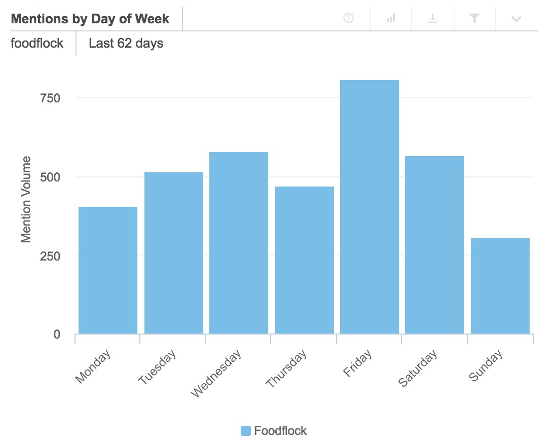 En estos dos últimos meses, los días de la semana que mayor interactividad ha tenido el hashtag han sido los viernes, algo lógico si pensamos en un contenido relacionado con la gastronomía y el ocio. El día que menos, los domingos.