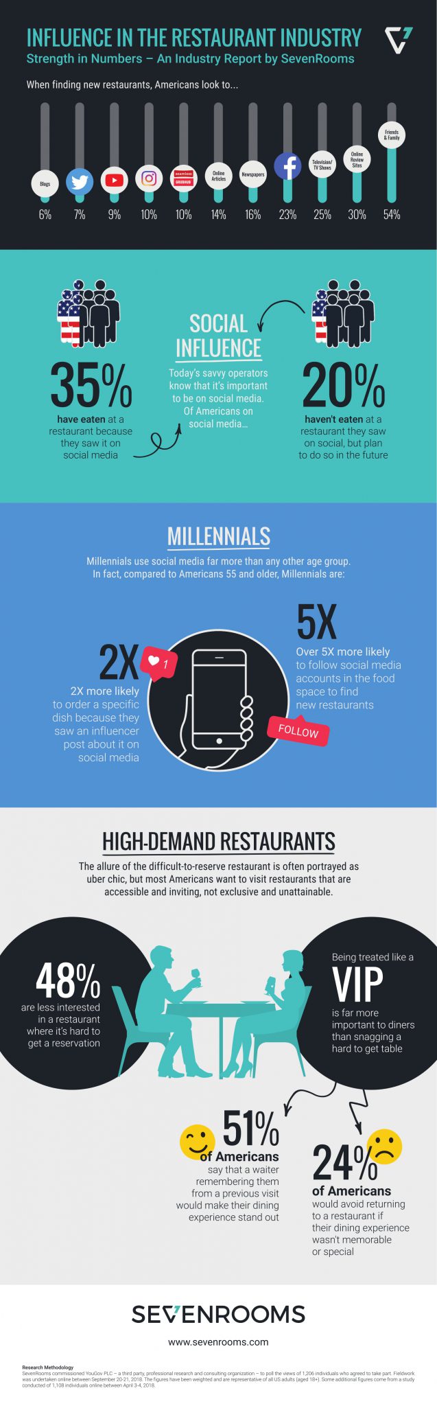 Los datos presentados a continuación parten de un estudio realizado con 2300 consumidores de edad adulta procedentes de EE. UU. La pesquisa fue realiza por la empresa estadística y de estudios de mercado YouGov a petición del equipo de SevenRooms y se realizó durante el último trimestre del pasado año.