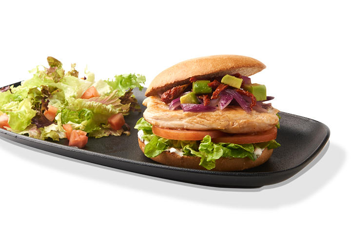 Aguacate Chicken Burger: ¿Se puede disfrutar de una hamburguesa ligera y nutritiva llena de sabor? El equipo de chefs de VIPS ha dado con la receta perfecta: Pechuga de pollo a la plancha en pan de mollete con aguacate, tomate seco, cebolla a la plancha, rodajas de tomate, lechuga y salsa de yogur.