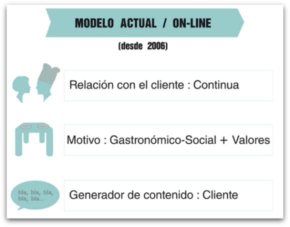3º El restaurante es el emisor casi único del contenido que genera, es decir, el restaurante es el que habla del restaurante en los diferentes canales, web, prensa, etc.