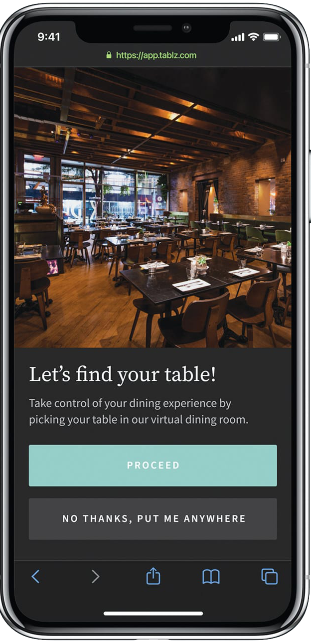 El potencial de Tablz reside en que da mayor control al consumidor sobre su experiencia en el local. La reserva en el restaurante elegido no solo tendrá fecha y hora, además, indicará cuál ha sido la mesa escogida. Y la selección no se hace a ciegas, sino que el cliente puede revisar la posición de cada una de las mesas disponibles y elegir de acuerdo a sus necesidades personales: ¿cerca de la ventana?, ¿junto a la cocina?, ¿lejos de los baños?, ¿apartada? ¿más o menos iluminada? El consumidor puede examinar al detalle los sitios disponibles en el salón gracias a la tecnología de Odyssey3D Inc. y Matterport.